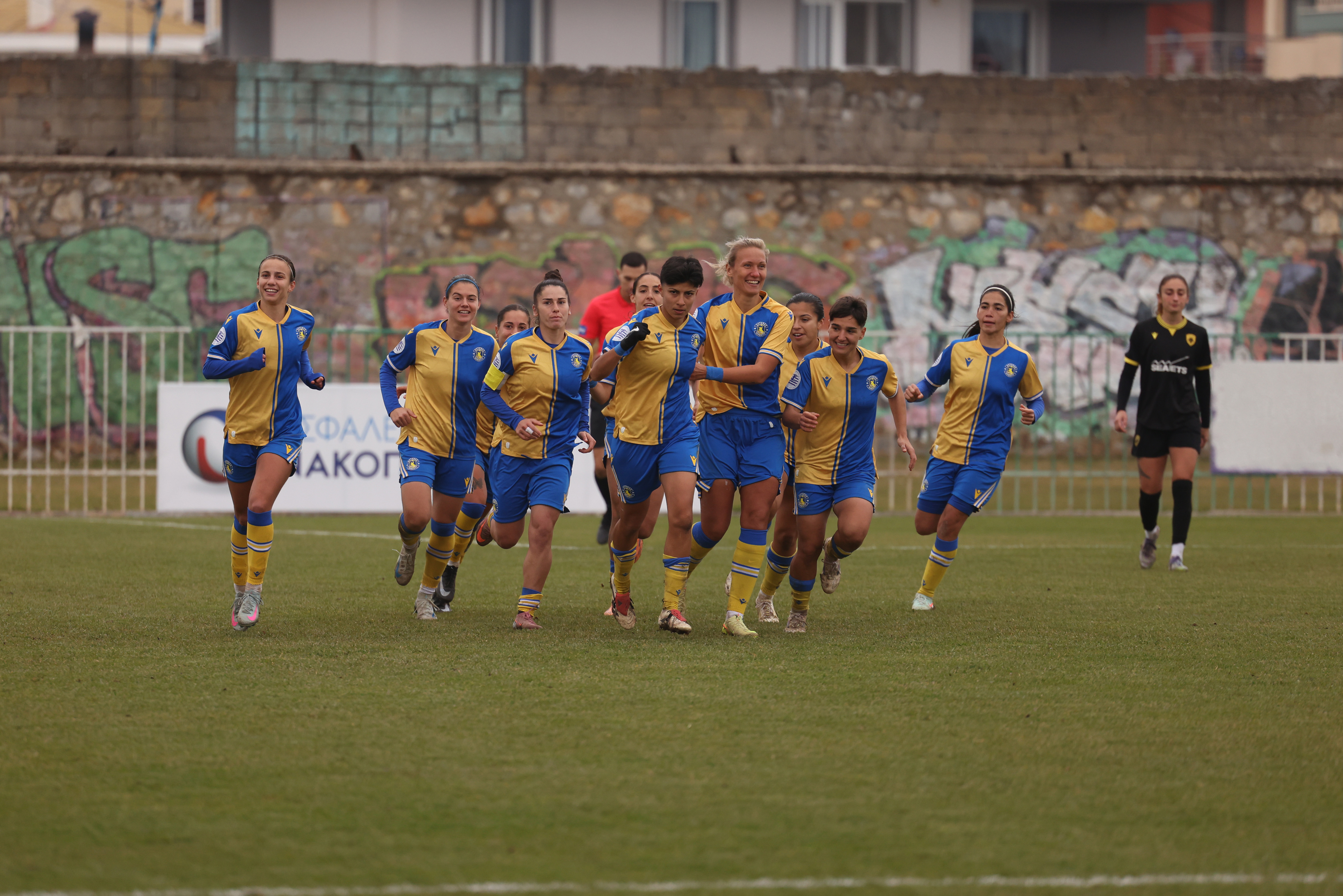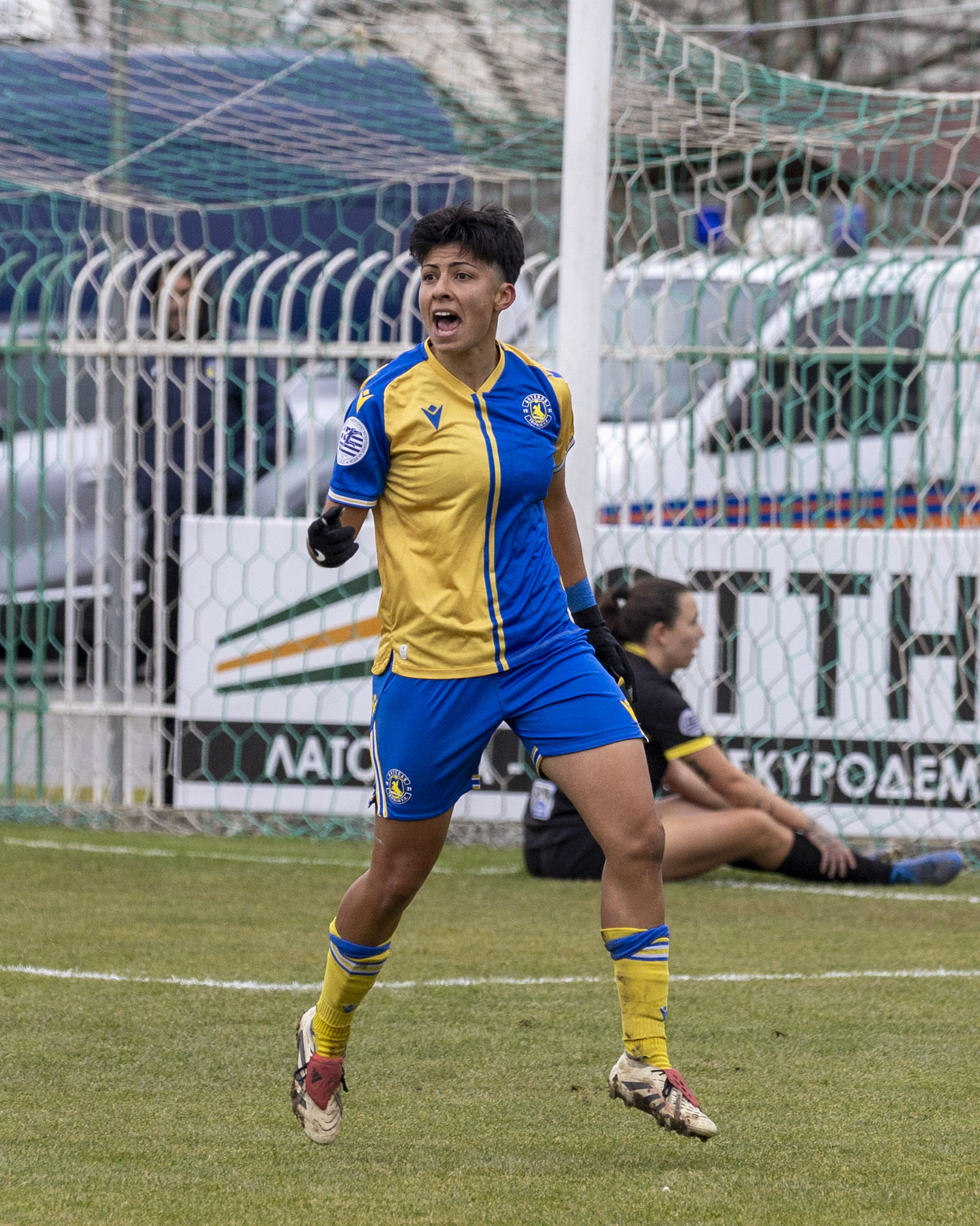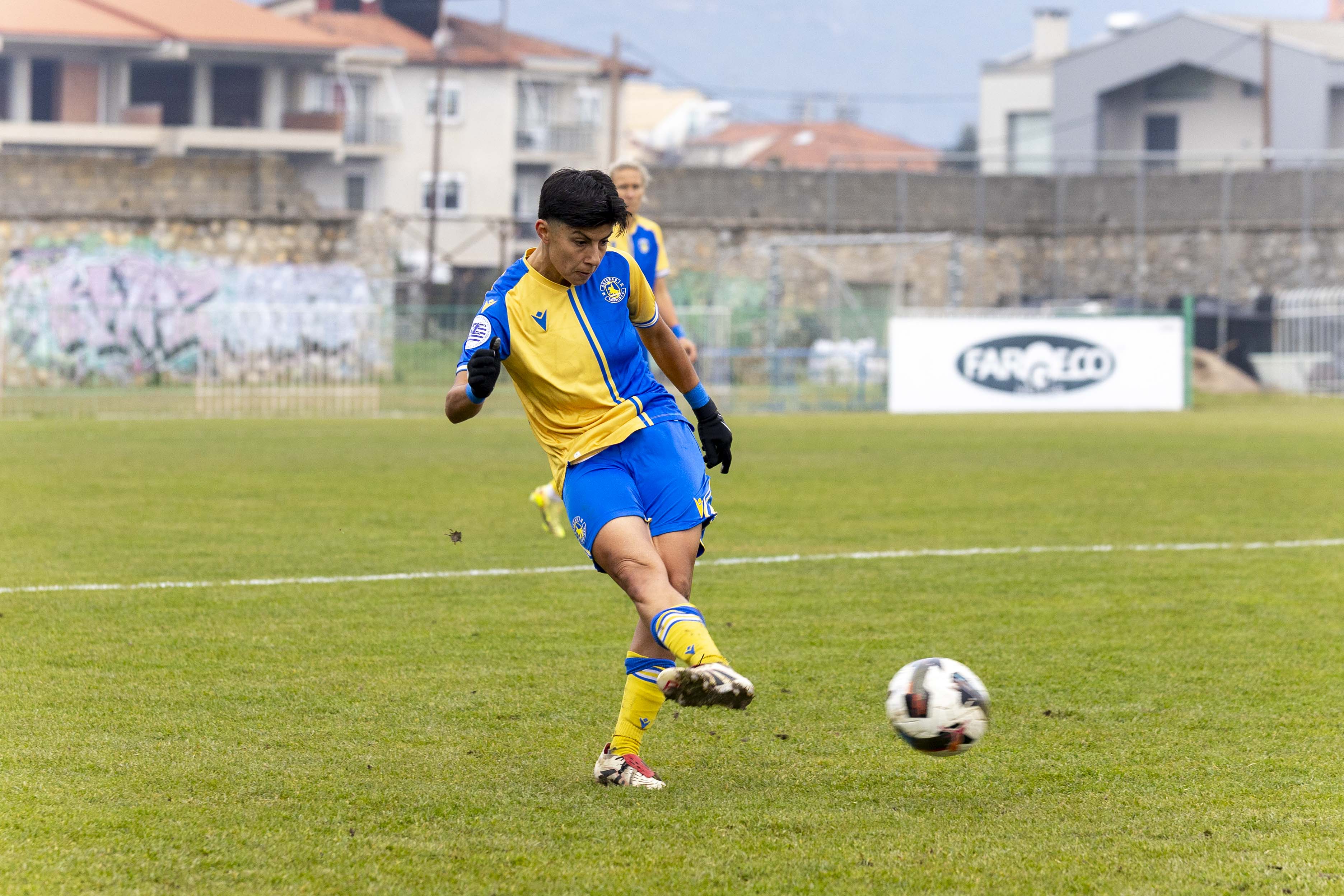 Στο 43' η ομάδα μας άνοιξε το σκορ με την Γκάτσου, η οποία έκανε την κεφαλιά, η μπάλα χτύπησε στο οριζόντιο δοκάρι και στην επαναφορά η παίκτριά μας έστειλε την μπάλα στα δίχτυα.