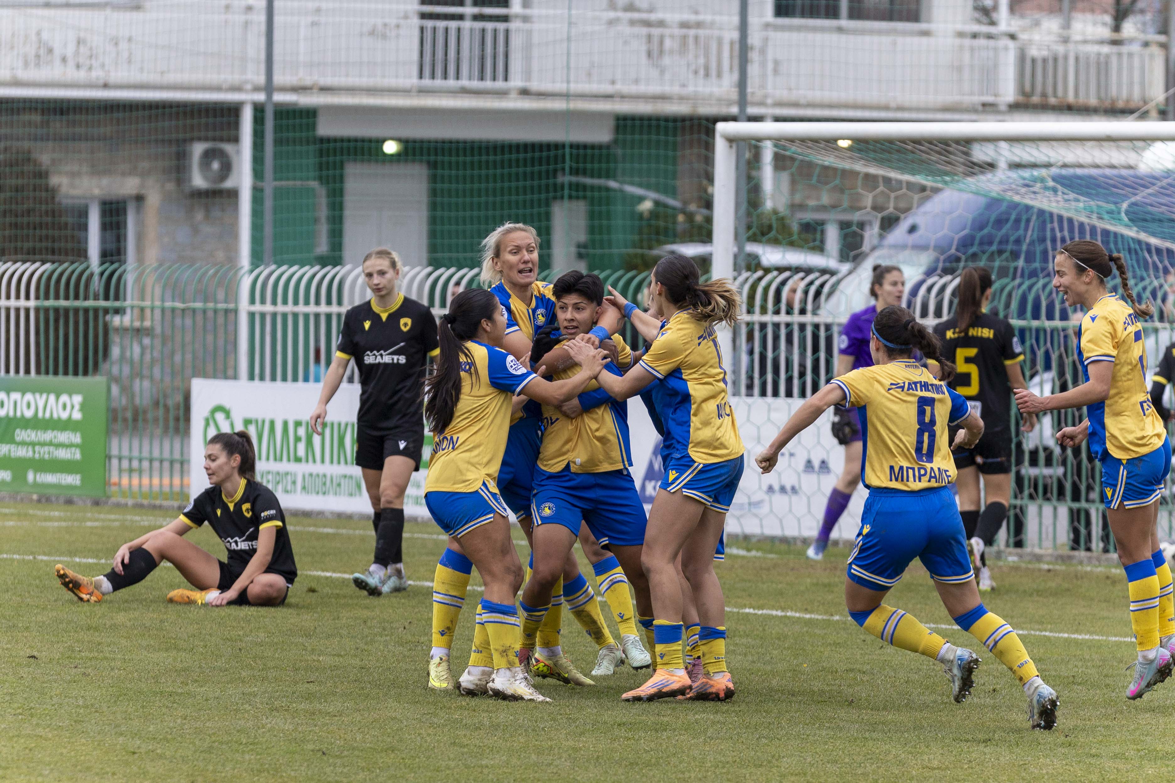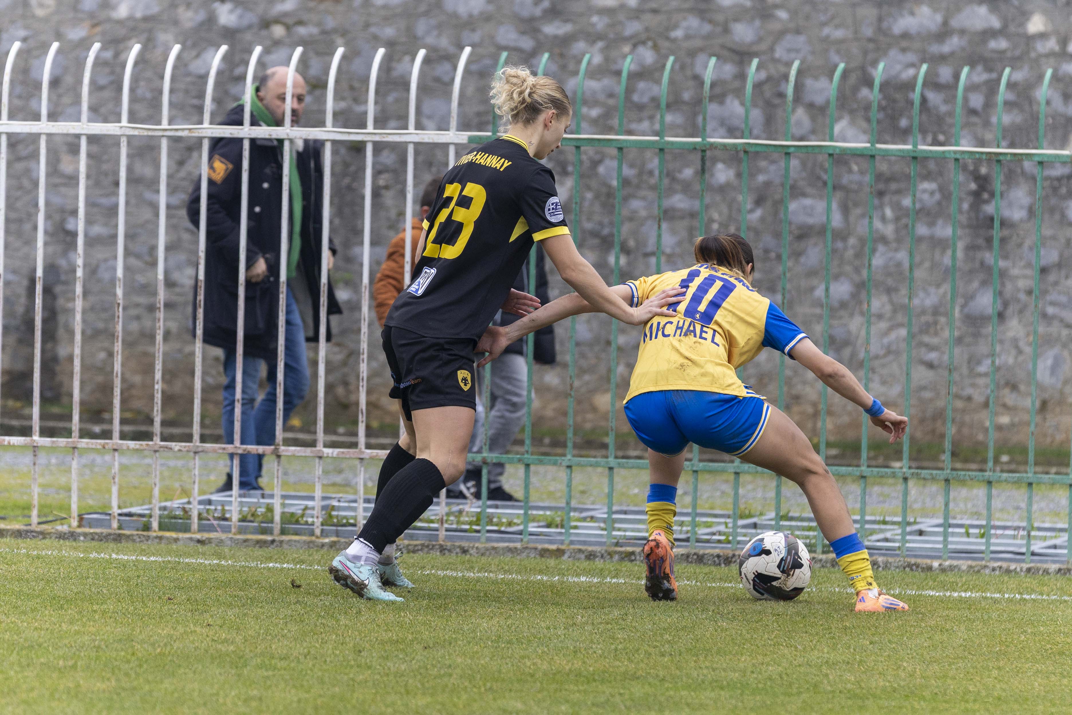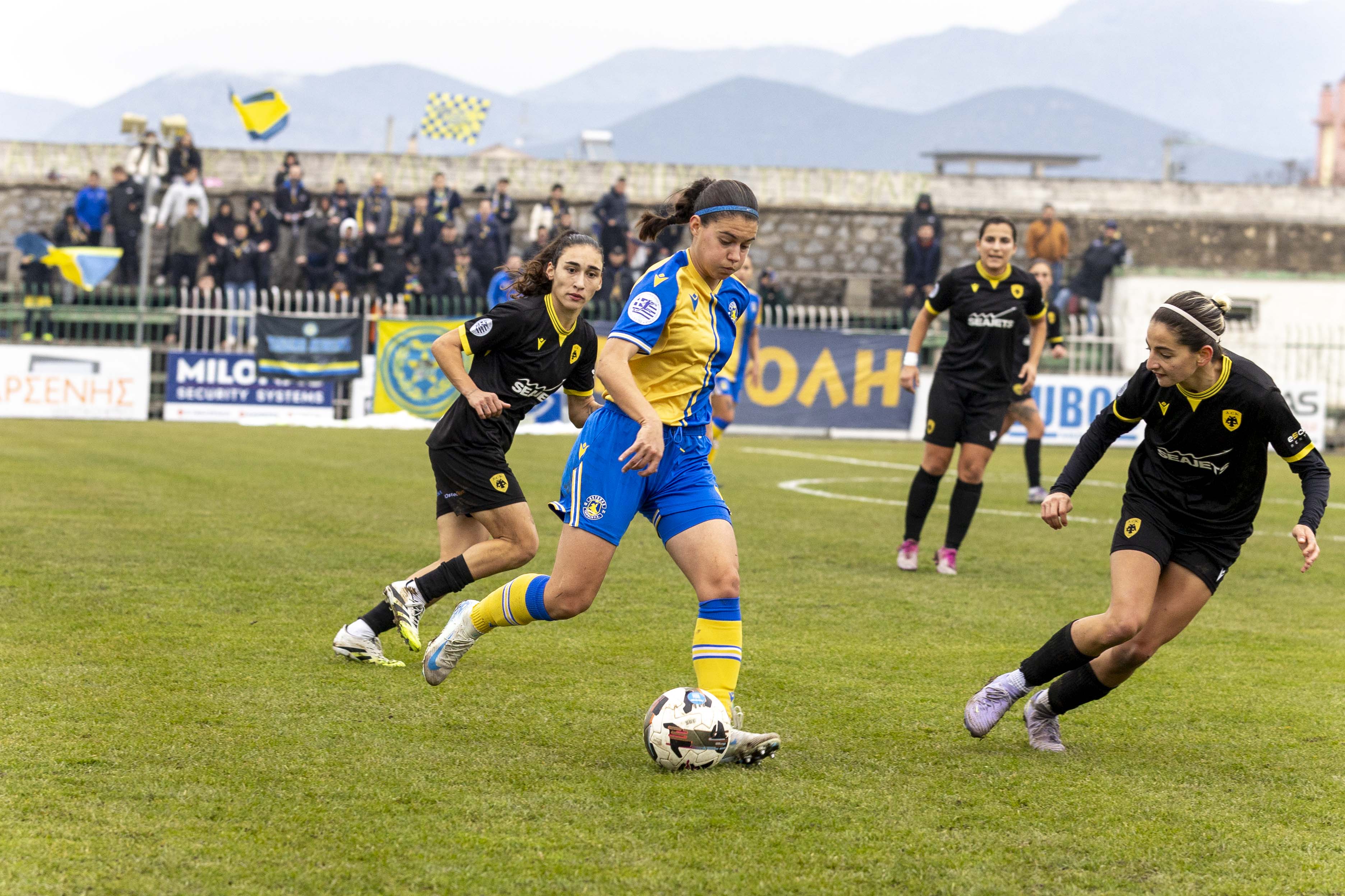 Στο πρώτο ημίχρονο οι φιλοξενούμενες απείλησαν στο 23', αλλά η Προξένου με καταπληκτική προσπάθεια έδιωξε πριν η μπάλα περάσει τη γραμμή στο πλασέ της Κόγκουλη.